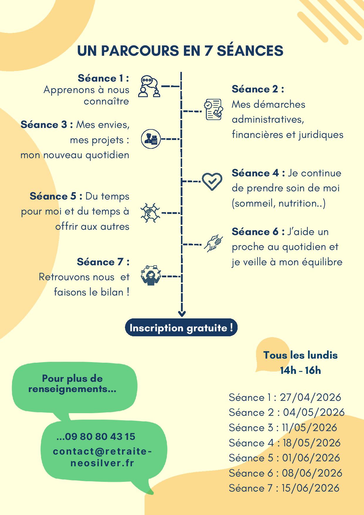 Ce cycle de 7 ateliers gratuits permettra aux bénéficiaires d’être accompagnés au mieux pour préparer et vivre une retraite sereine, active et en pleine forme, tout cela dans un cadre bienveillant et un climat de confiance.